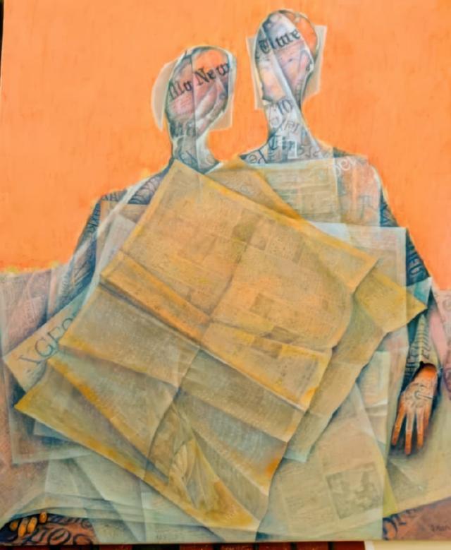 Zeitungsverkäufer, 120 x 100 cm, Öl auf Leinwand