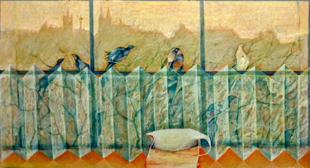 Fenster B 90 x H 50 cm. Öl auf Leinwand